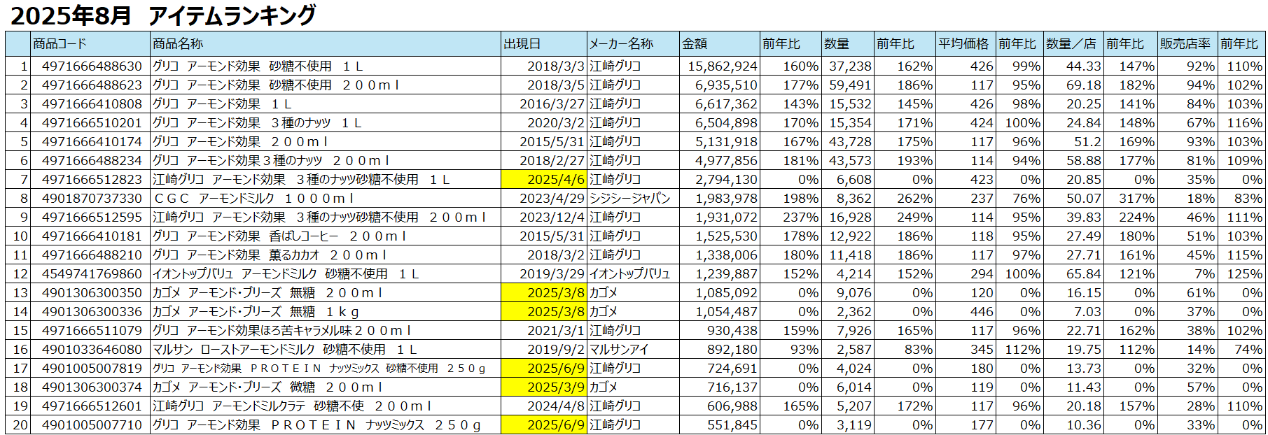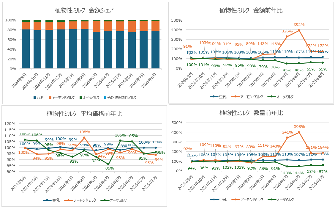 2025年3月からアーモンドミルク全体の売上は大きく伸長。